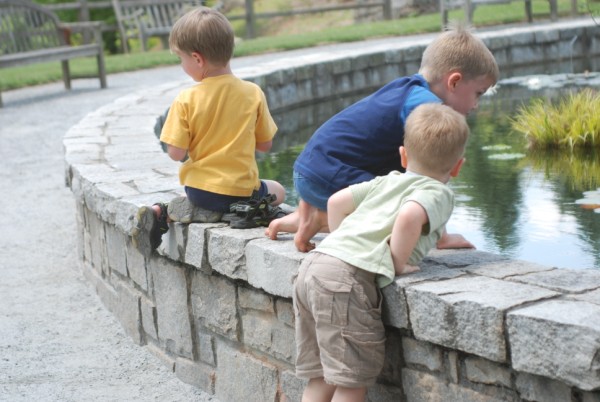 Including the little troublemaker who didn't want to sit with the rest of the kids for the picture. There was a children's garden which was very cool. I didn't get many pictures because I was too busy following the little people around and keeping them out of the ponds. There was a small fountain they could play in so we came prepared with swimsuits.